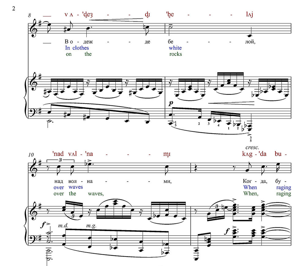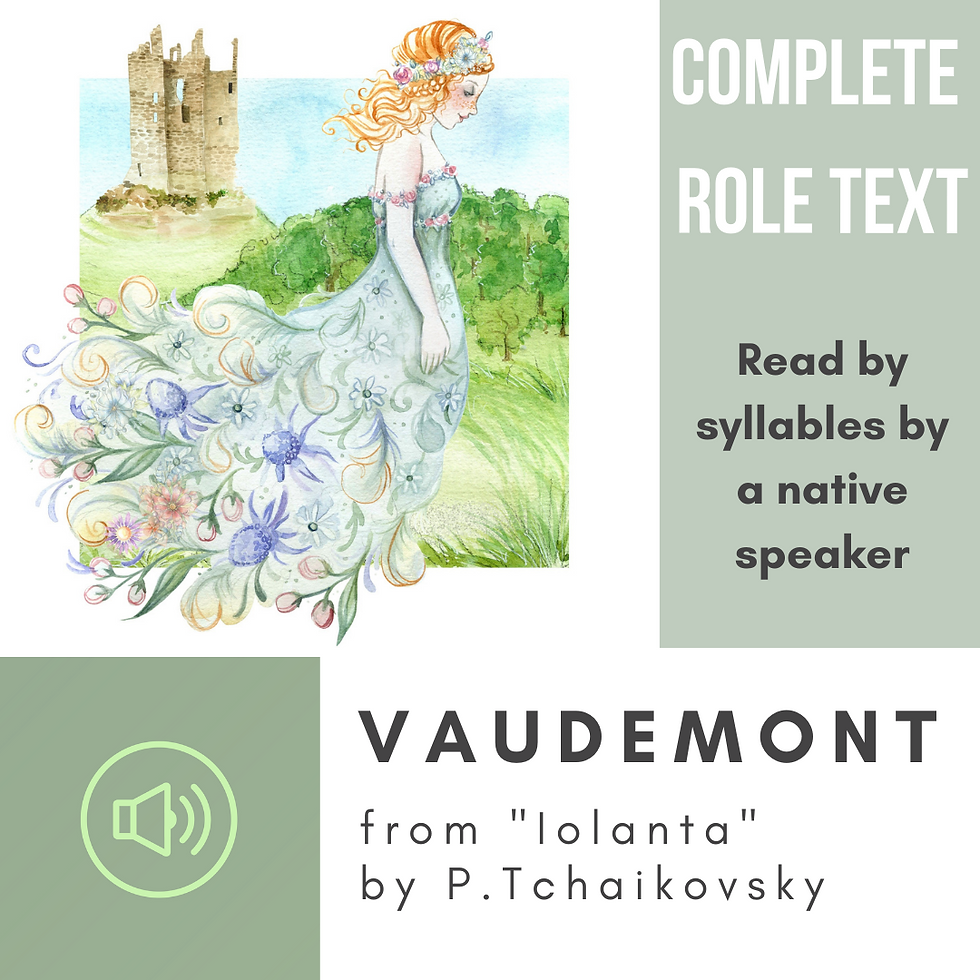 Diction score (sheet music with IPA phonetics and translations), Diction audio guide recorded by a Russian native speaker, Music coaching audio guide (Voice line + piano line), Rehearsal backing track (Piano line only)